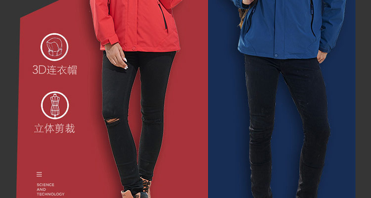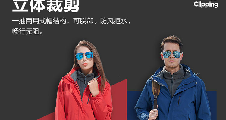 特性:男女款三合一、三件套沖鋒衣,可拆卸