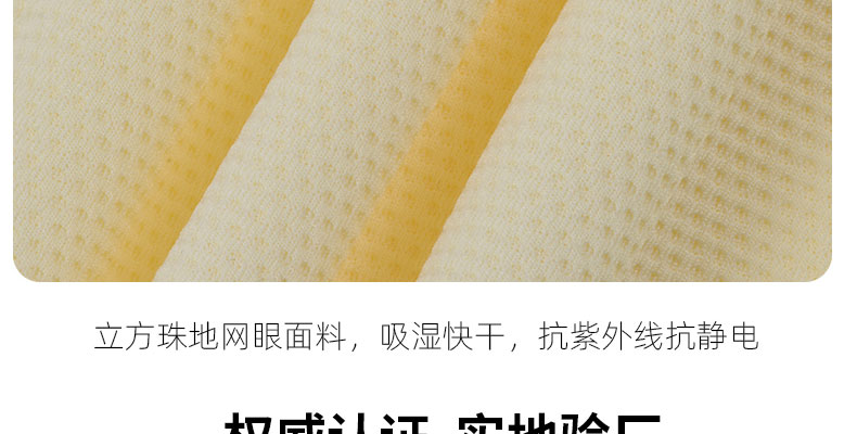 特性:立方方格粗網眼織法,面料自帶吸汗快干,抗紫外線,防靜電功能,純色設計顏色百搭