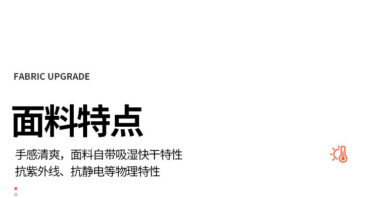 手感清爽,面料自帶吸汗快干,抗紫外線抗靜電功能